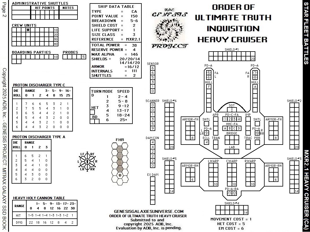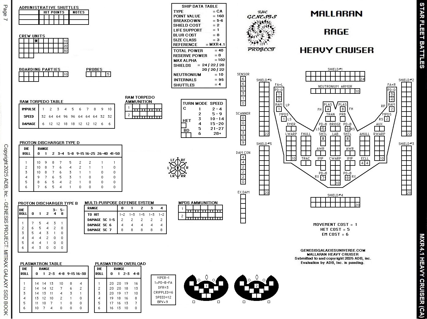Finally, I was forced to omit the Phaser-3’s that Mike Raper has included to guard the rear of the vessel. The PH-3 table simply would not fit on the SSD. The Phaser-3’s were therefore changed to Phaser-2’s, which already had their table on the SSD. Yes, that means the Tychor Heavy Cruiser will have slightly more Damage Output (at an increased cost) to guard the rear of the ship, but I deemed this acceptable as the Plasma Cannons were slightly reduced in capability (so they balance out somewhat).